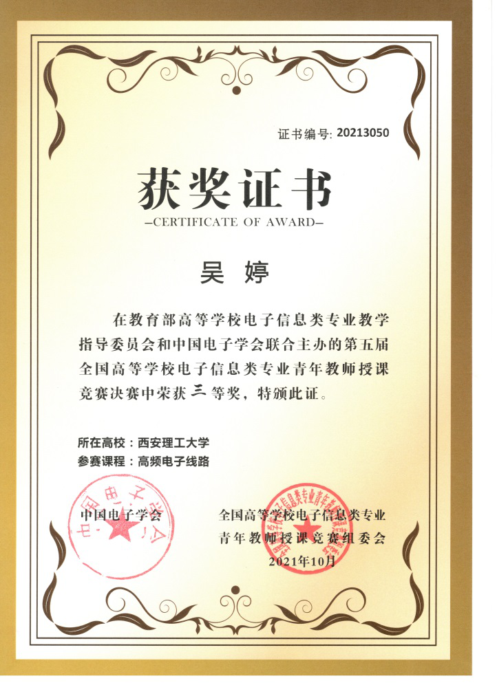 足球赌注网站通信系教师吴婷获得全国三等奖,参赛课程为高频电子线路。比赛分为预赛和决赛两个阶段。本届大赛于今年4月份启动,通过评审,最终全国共有132名选手从四大赛区脱颖而出,进入决赛。
