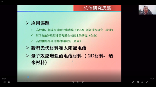 刘生忠教授介绍了钙钛矿太阳电池的发展历程,分析了电池效率提升的深层物理机制,介绍了柔性电池的制备方法和工艺,并分享了在大尺寸钙钛矿单晶和探测器件方面的最新研究思路和研究成果,并就钙钛矿太阳电池的发展前景等相关问题与参会师生进行了深入的交流与探讨。