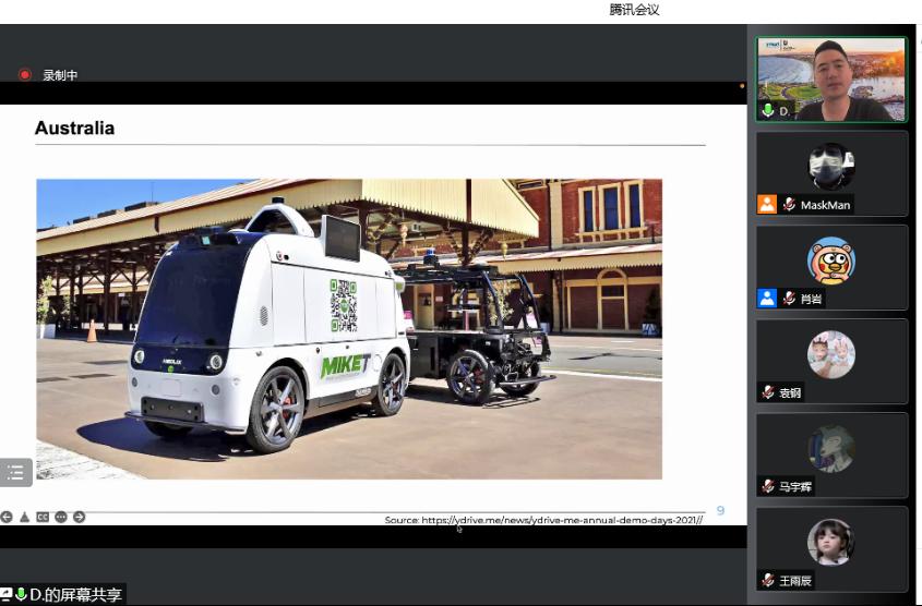 讲座中,杜博士以5G、自动驾驶和物联网为背景,深入浅出地介绍了未来公共交通领域的发展方向,以及例举了新加坡、澳大利亚的前沿研究动态。另外,详细介绍了动态无人驾驶城市公共交通(DART)系统的框架结构和现有的挑战。