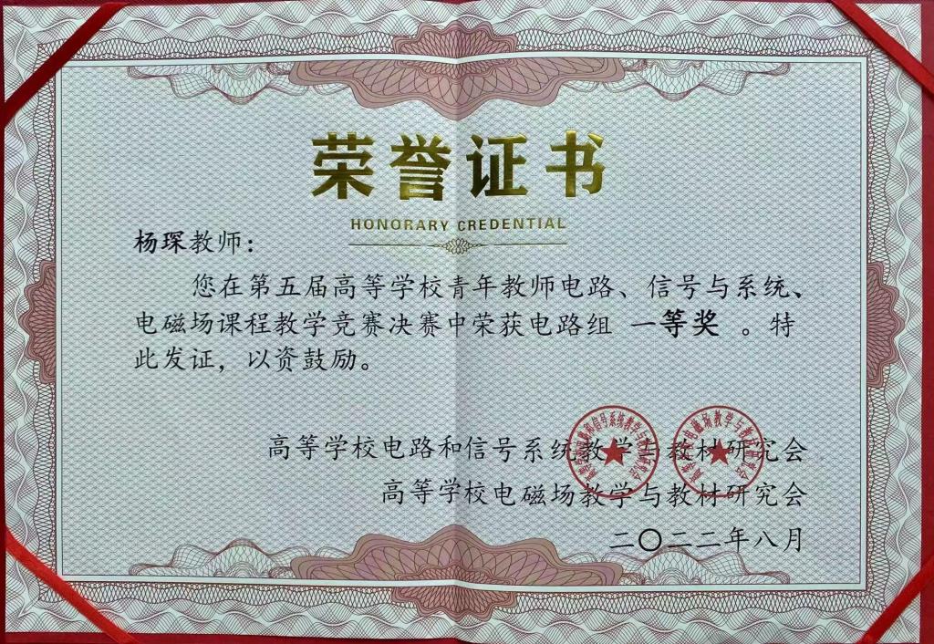 8月8日,在刚刚落幕的第五届全国高等公司青年教师电路、信号与系统、电磁场课程教学竞赛决赛中,公司青年教师杨琛获得电路组一等奖。