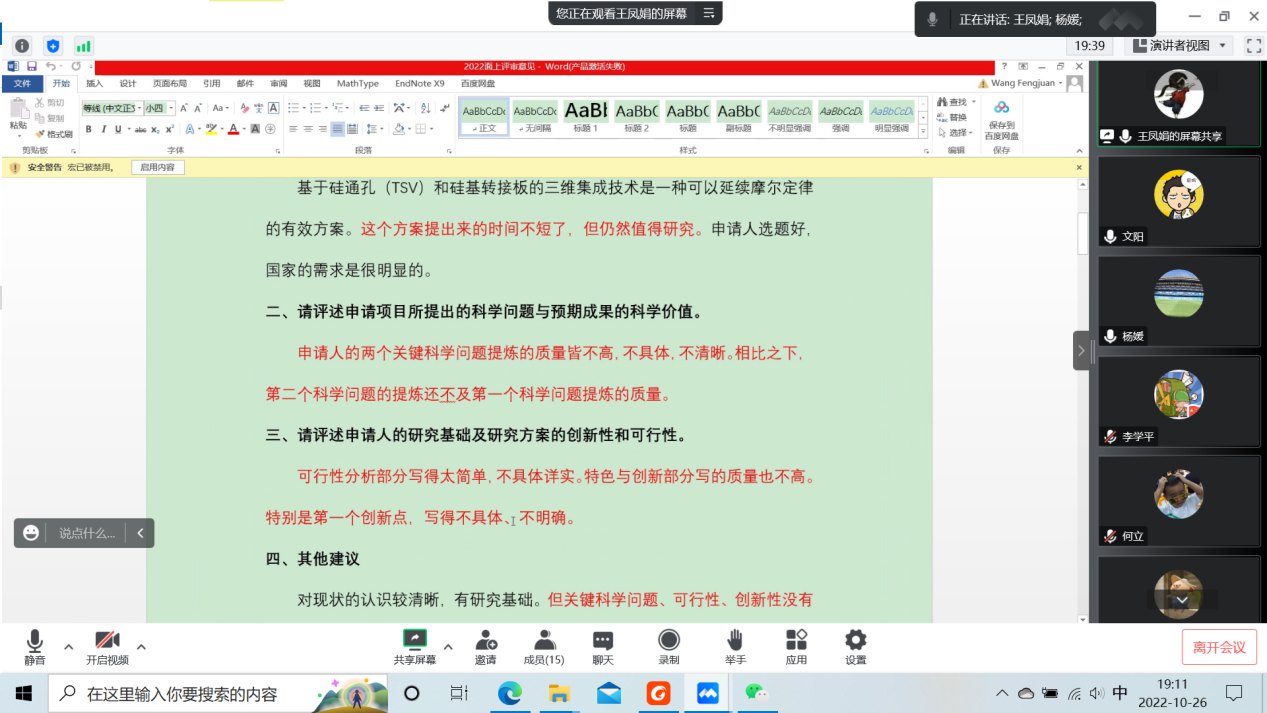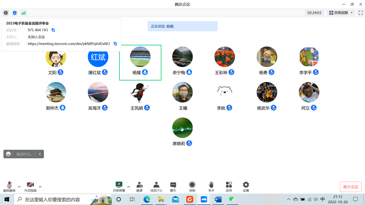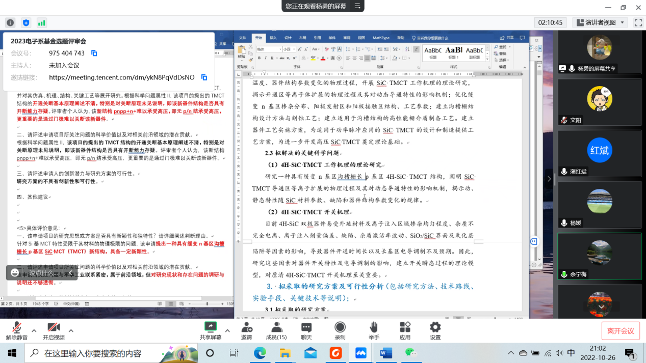 10月26日晚,自动化公司电子工程系举办了2023年国家自然科学基金项目选题线上评审会,电子学科余宁梅、杨媛、席晓莉、王彩琳、蒲红斌、郭仲杰6位教授担任评审专家,电子工程系2023年度国家基金重点培育项目申报教师参会。